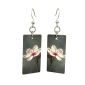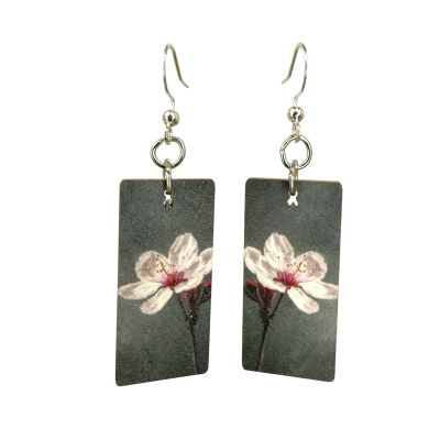 Size: 1.35" H × 0.7" W × 0.1" thick. Material: 100% recycled paperboard with a natural art gallery aesthetic. Ear wires: Silver-finished 304L stainless steel, hypoallergenic. Made in the USA.