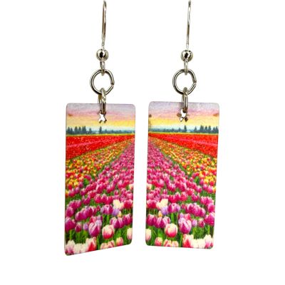 Size: 1.35" H × 0.7" W × 0.1" thick. Material: 100% recycled paperboard with a natural art gallery aesthetic. Ear wires: Silver-finished 304L stainless steel, hypoallergenic. Made in the USA.