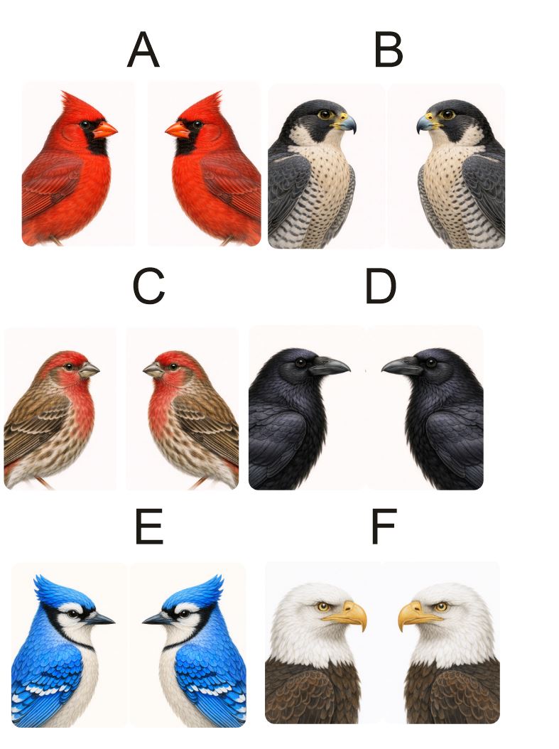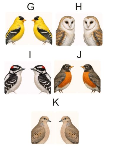 Wild Bird Collection: Northern Cardinal, Peregrine Falcon, House Finch, American Crow, Blue Jay, Bald Eagle, American Goldfinch, Barn Owl, Downy Woodpecker, American Robin, and Mourning Dove.