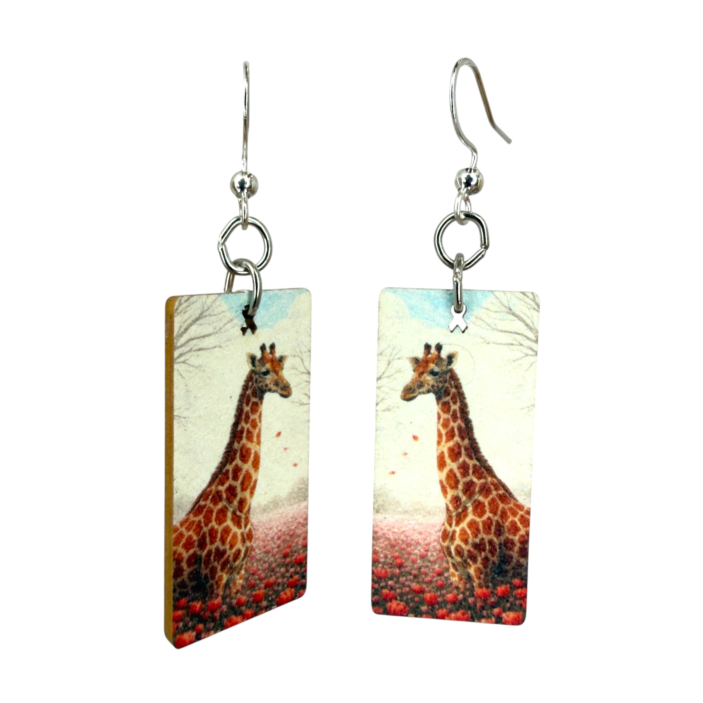 Size: 1.35" H × 0.7" W × 0.1" thick. Material: 100% recycled paperboard with a natural art gallery aesthetic. Ear wires: Silver-finished 304L stainless steel, hypoallergenic. Made in the USA.