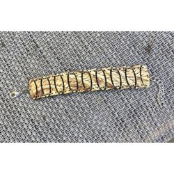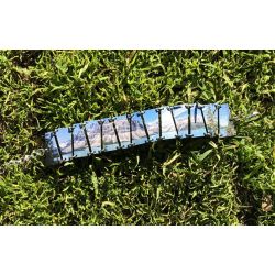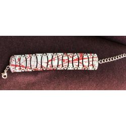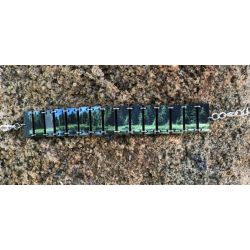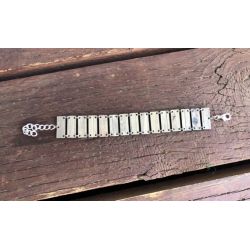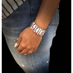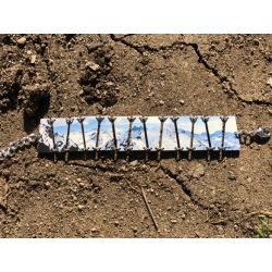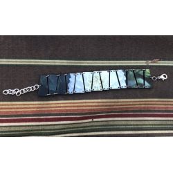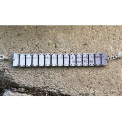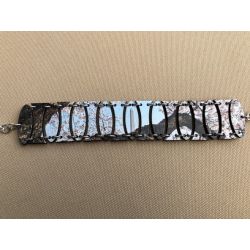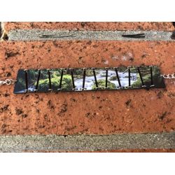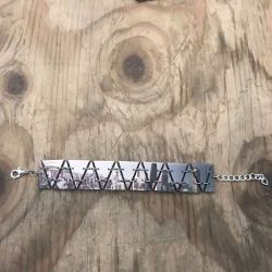 Bracelets are linked together with steel rings, made with sustainably harvested wood and hang on 90% recycled tags.