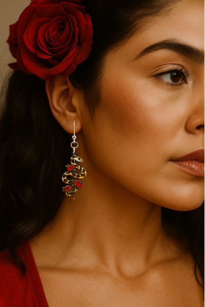 - Rattle Snake and Rose Earrings are so striking, they'll have everyone charmed – just like a rattlesnake with its prey!
