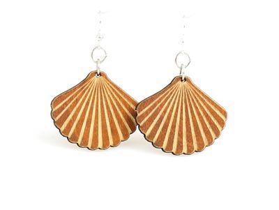 Made In U.S.AStyle # 1455Size 1" x 1.2"Shell EarringsSeashells are external skeletons of MollusksMade from sustainably sourced wood and 90% recycled display cards. Laser-cut wood Stained with water based dye Ear wires are silver-finished 304L stainless steel, hypoallergenic, and enhanced with a new, smooth and consistent electrophoretic coating that resists tarnishing.Earrings shown in color Cinnamon