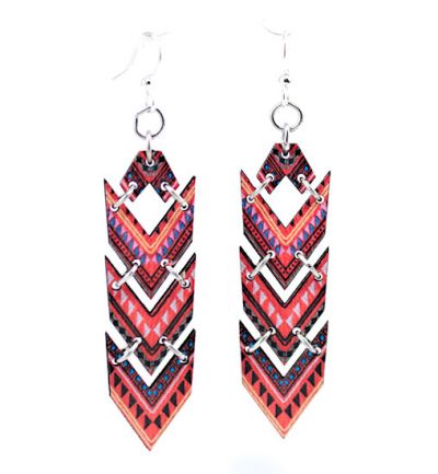 Made In U.S.AStyle # 1533Size 2.7" x 1.0"African Chevron EarringsA collaborative design byBriea Emory and Lance Nybye. This Afrofuturistic style is hot this year!Made from sustainably sourced wood and 90% recycled display cards. Laser-cut wood Image on Front with Natural wood backEar wires are silver-finished 304L stainless steel, hypoallergenic, and enhanced with a new, smooth and consistent electrophoretic coating that resists tarnishing.Earrings come as shown