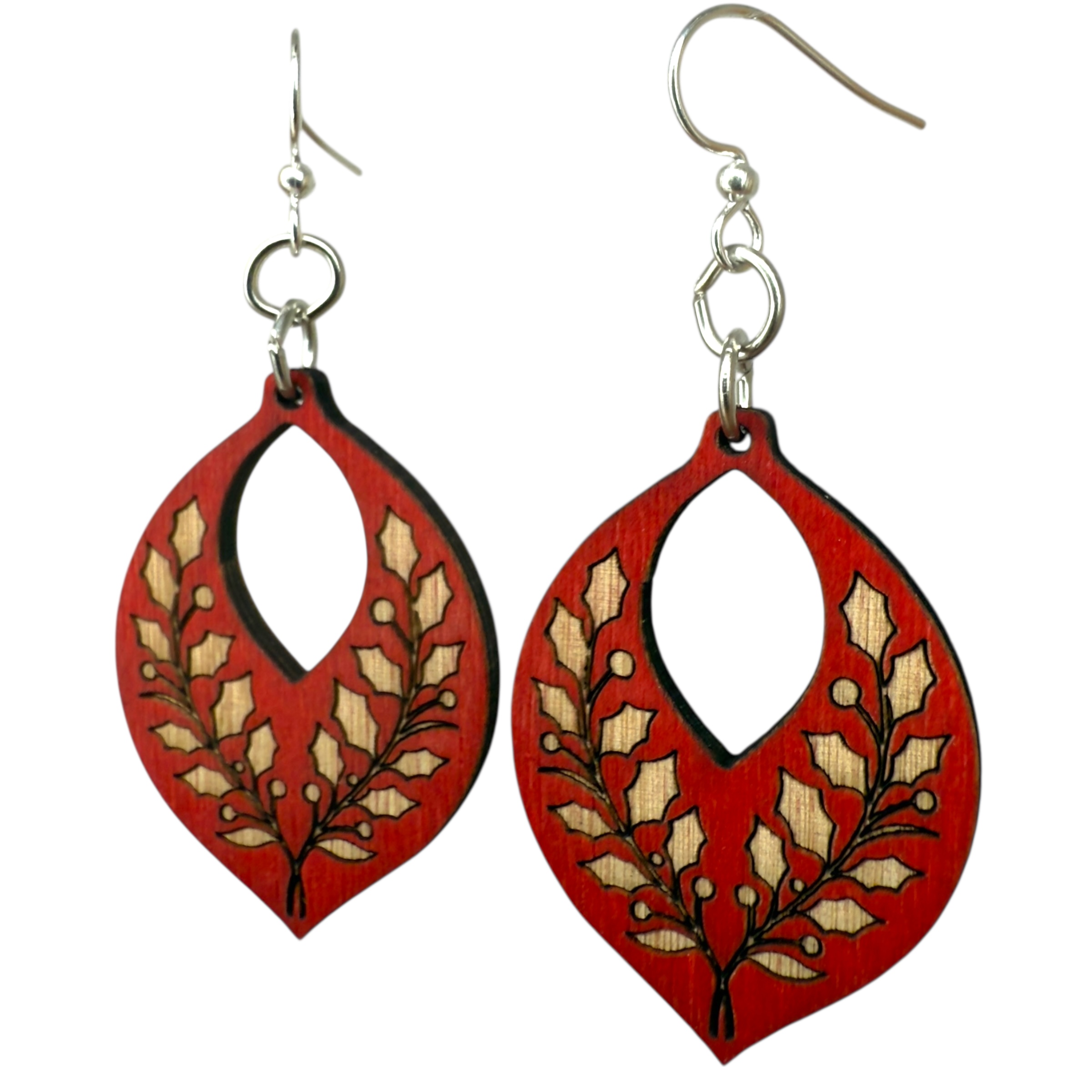 - Holly Berry Earrings - Cute shape with engraved holly Berry - Very Festive and boho