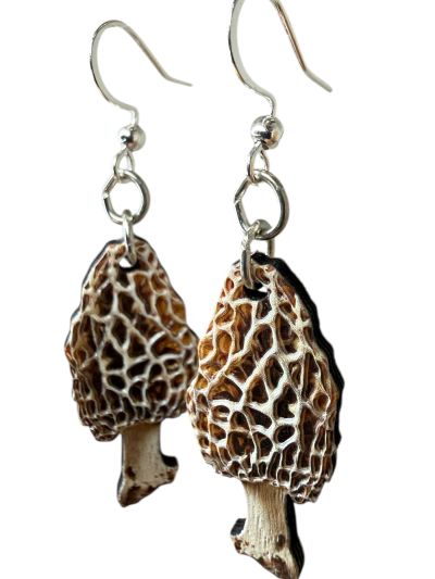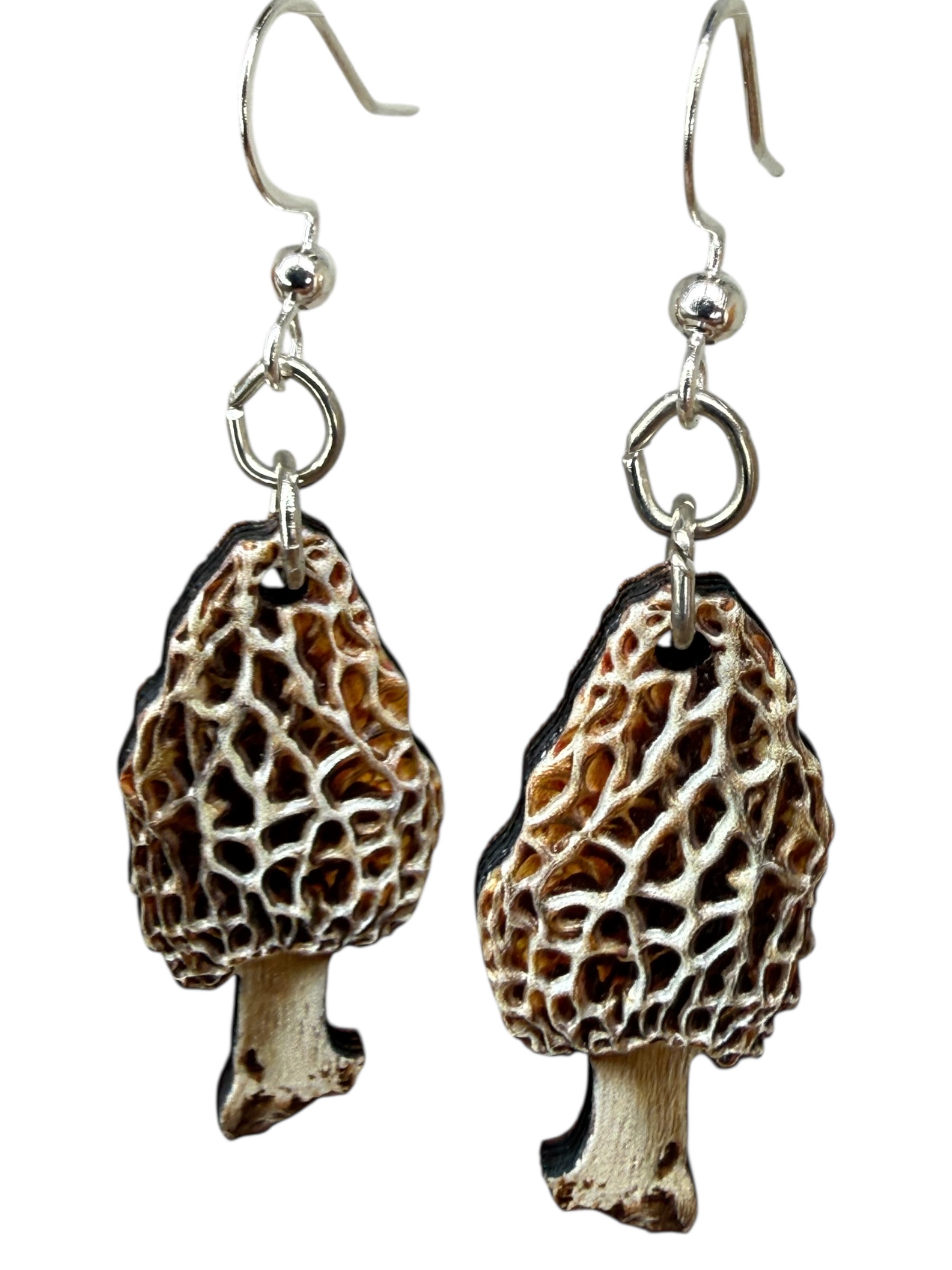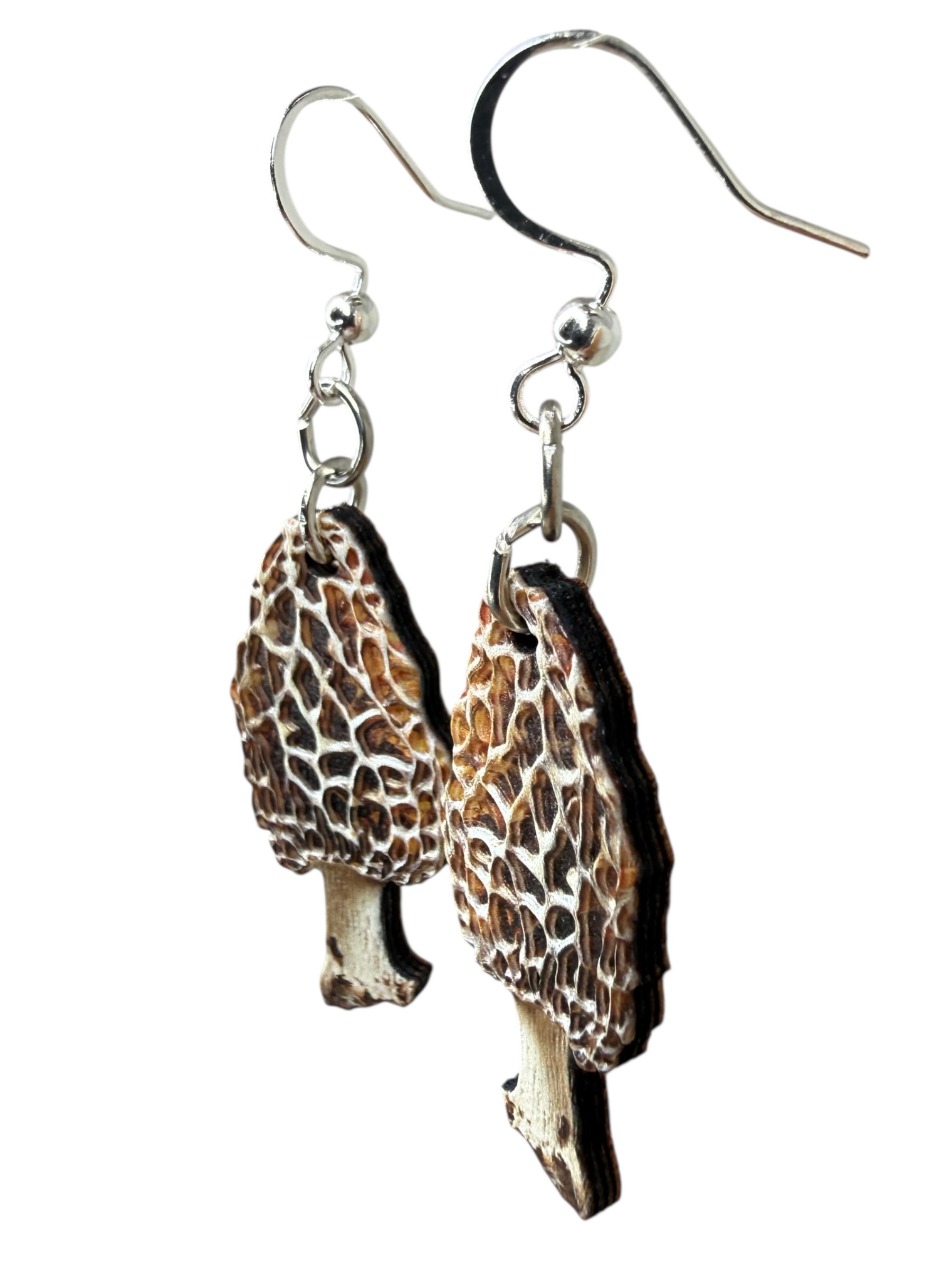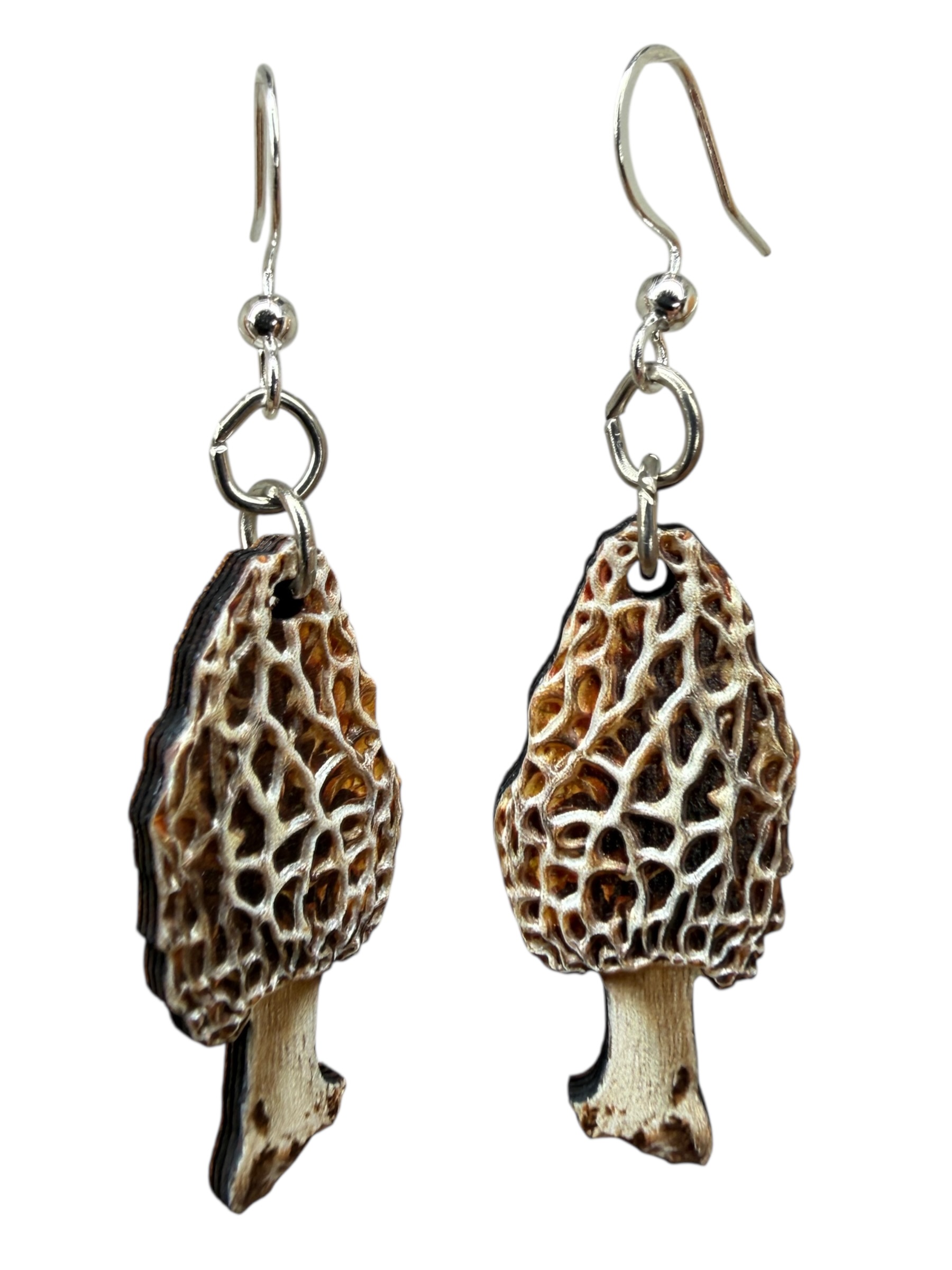 - Embossed Earrings - The white outside of the Morel is raised on top of the wood, giving it a subtle 3D look, textured touch, and an overall dynamic look